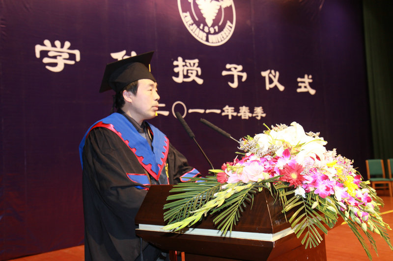 2011年3月25日下午,春暖花开,阳光明媚,浙江大学信息学部2011届研究生春季毕业典礼暨学位授予仪式在玉泉校区永谦学生活动中心小剧场隆重举行。浙江大学副校长褚健教授出席典礼并为优秀毕业生颁奖,典礼由信息学部副主任鲍虎军教授主持,信息学部主任刘旭教授、副主任荣冈教授以及学部各院系领导、教授、39名博士、647名硕士及部分学生家长参加了典礼。